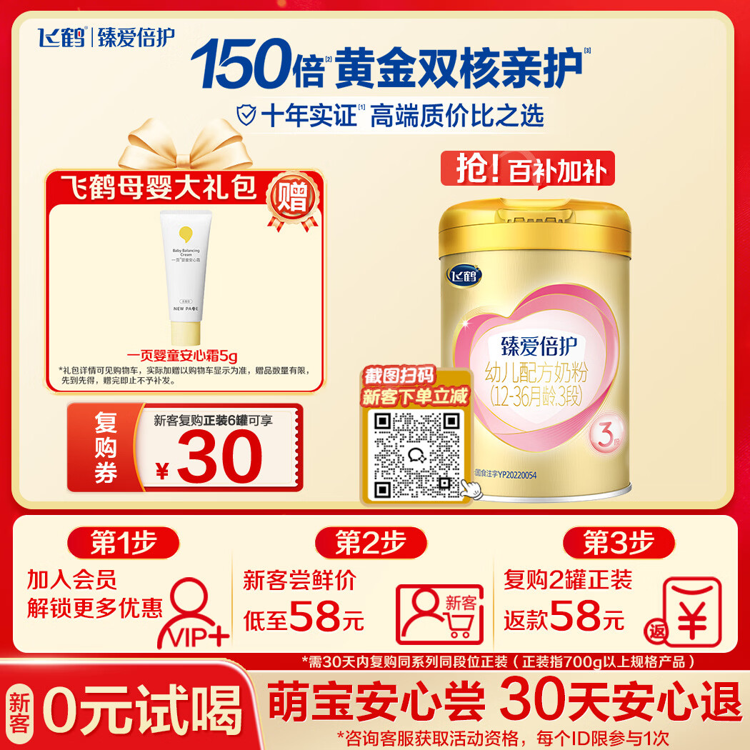 飞鹤臻爱倍护超级飞帆 婴幼儿配方奶粉3段(1-3岁)300g【京东试用装】