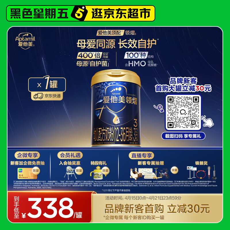 爱他美(Aptamil)爱他美 领熠幼儿配方奶粉 3段(12-36个月) 800g*1罐 领熠母爱同源