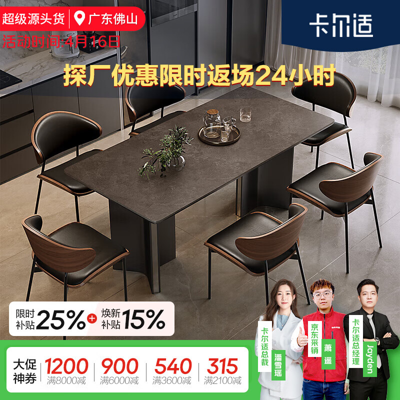 卡尔适轻奢极简岩板餐桌家用小户型现代简约金属长方形餐桌椅组合BN228 岩板餐桌【维克深灰】 140*80*75cm【全托底板】