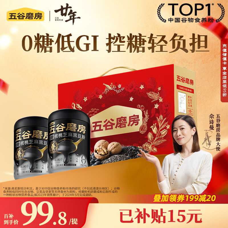 五谷磨房食养礼低GI无糖黑芝麻糊核桃芝麻粉送长辈送父母礼品1092g