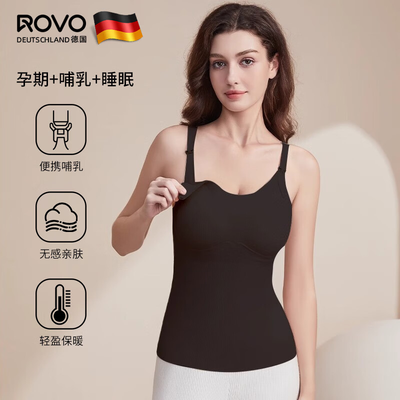 ROVO哺乳吊带保暖背心产后喂奶专用秋冬款抗菌防走光遮挡神器打底哺乳 黑色 M