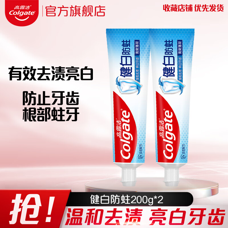 高露洁健白防蛀牙膏家庭装双效配方牙齿清爽薄荷清新口气 【组合更优惠】健白防蛀 200g*2支