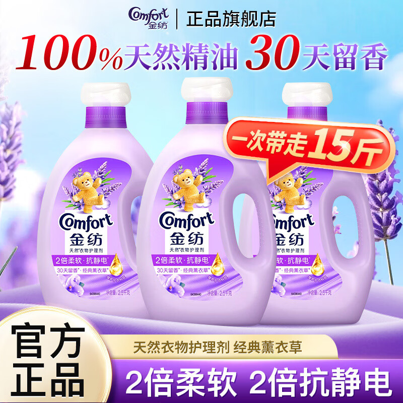 金纺衣物护理剂薰衣草柔顺剂柔软抗静电持久留香护衣家用整箱 【组合装】薰衣草2.5kg*3瓶