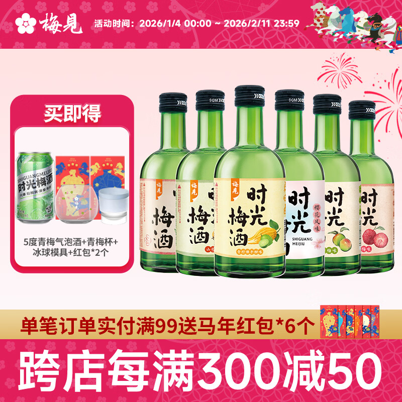 梅见 青梅酒原味时光梅青柠佛手柑味组合 男女士低度微醺果酒节日送礼 8度时光梅酒口味全家福330ml*6