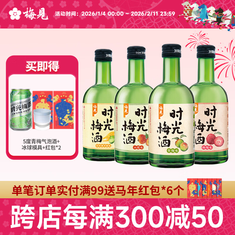 梅见 青梅酒原味时光梅青柠佛手柑味组合 男女士低度微醺果酒节日送礼 8度时光梅酒330ml*4