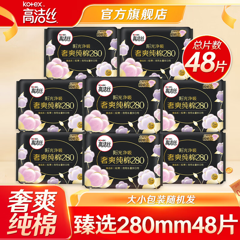 高洁丝卫生巾奢爽臻选极薄透气姨妈巾女生经期护理日用 臻选夜用 280mm 48片