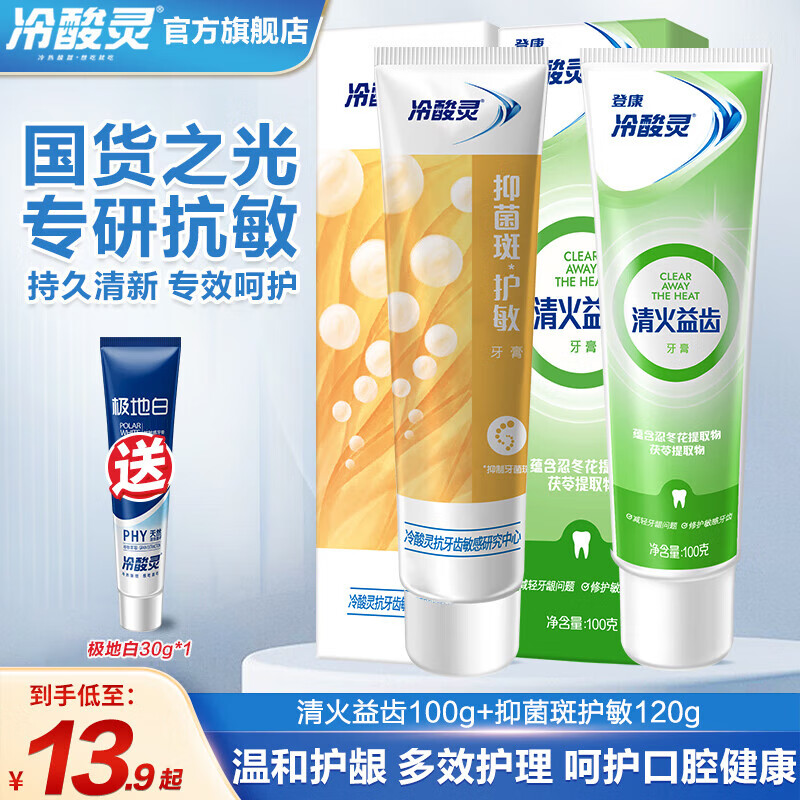 冷酸灵牙膏固齿护敏感护龈牙膏口气清新抗敏感缓解牙龈出血清火保证质量 【抗敏抑菌清火】220g两支装