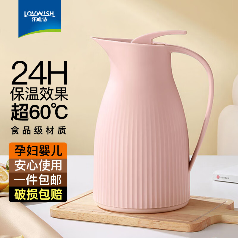 乐唯诗(NERVISHI) 保温壶家用办公室保温瓶热水瓶车载水壶暖水壶玻璃内胆开水瓶 唯斯壶樱花粉【按压款】 1000ml