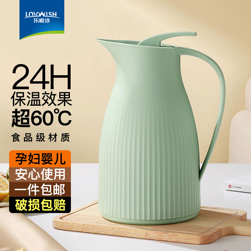 乐唯诗(NERVISHI) 保温壶家用办公室保温瓶热水瓶车载水壶暖水壶玻璃内胆开水瓶 唯斯壶抹茶绿【按压款】 1000ml