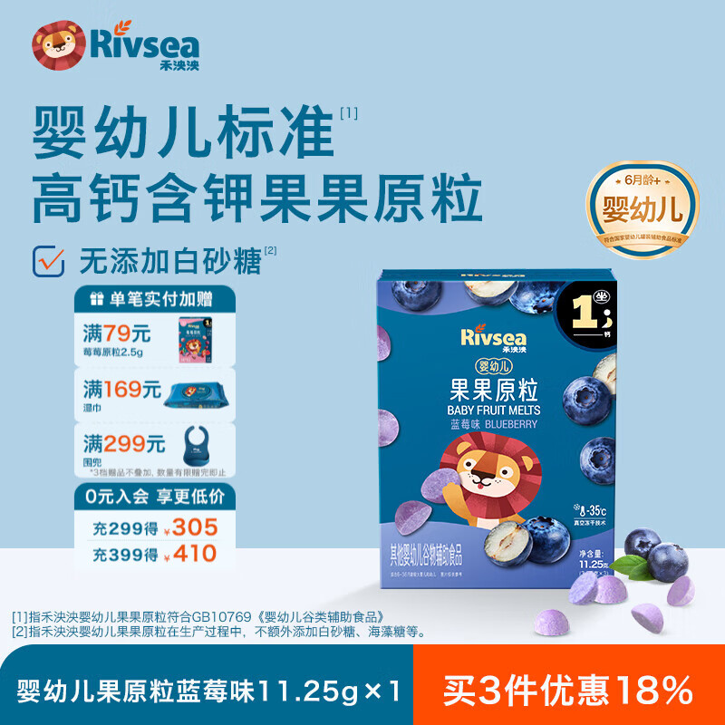 禾泱泱婴幼儿果果原粒宝宝儿童零食溶豆6月以上入口易溶无添加白砂糖 【婴幼儿】果果原粒-蓝莓味/11.25g