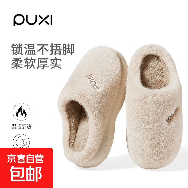 朴西棉拖鞋女士家居保暖2025新款秋冬季毛绒防滑冬天情侣棉拖鞋男 卡其 36-37
