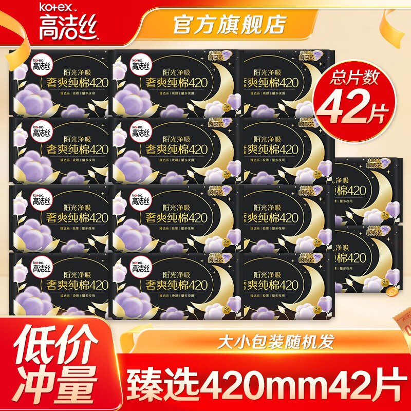 高洁丝卫生巾奢爽臻选极薄透气姨妈巾女生经期护理日用 臻选超长夜用 420mm 42片