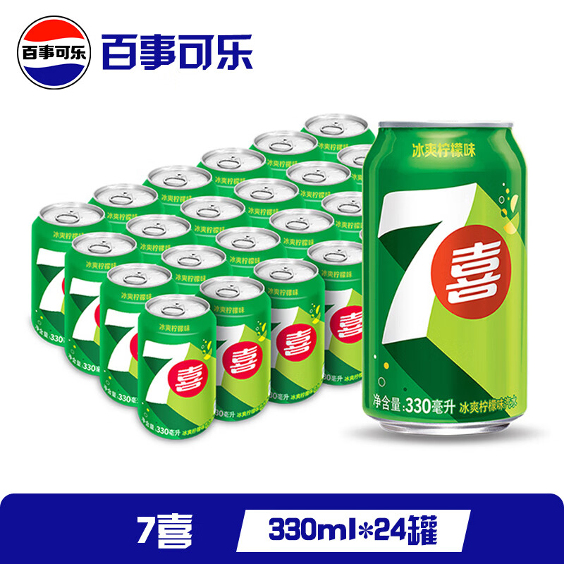 百事可乐 Pepsi 碳酸汽水饮料经典罐整箱 百事出品 新老包装随机发货3 【经典罐】7喜330ml*24罐