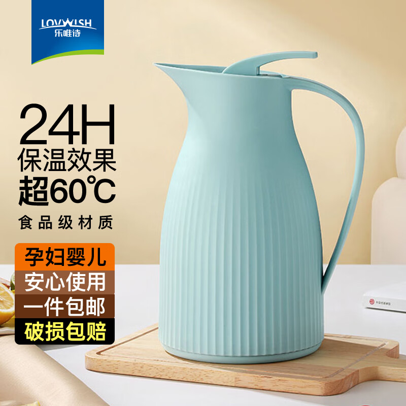 乐唯诗(NERVISHI) 保温壶家用办公室保温瓶热水瓶车载水壶暖水壶玻璃内胆开水瓶 唯斯壶天青色【按压款】 1000ml