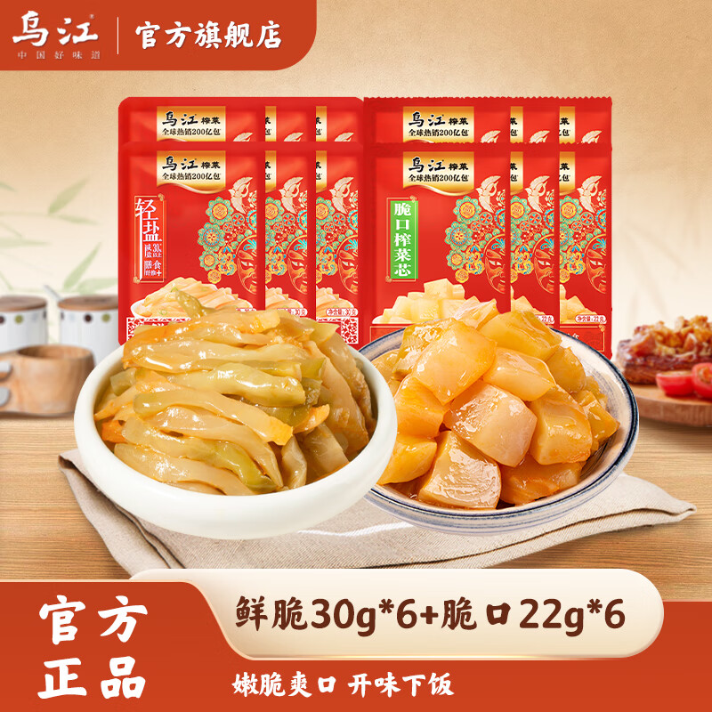 乌江22g脆口榨菜芯+30g榨菜丝组合 爽口开味下饭搭档学生榨菜拌面 鲜脆30g*6+脆口22g*6