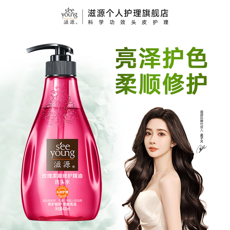 滋源(seeyoung)洗发水露水杨酸控油去屑蓬松无硅油男女士洗头膏 玫瑰柔顺修护精油洗发水400ml