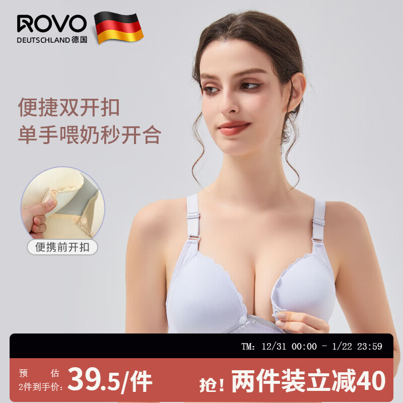 ROVO哺乳文胸孕妇内衣产前产后喂奶胸罩聚拢前开扣怀孕期喂奶专用 灰色 L【适用于90-120】