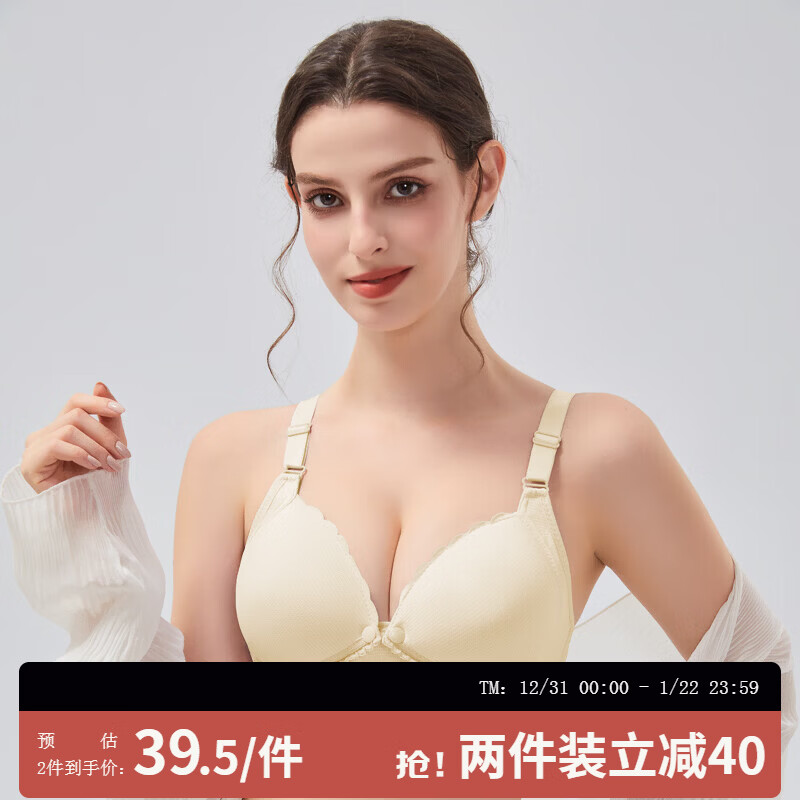 ROVO哺乳文胸孕妇内衣产前产后喂奶胸罩聚拢前开扣怀孕期喂奶专用 肤色 L【适用于90-120】