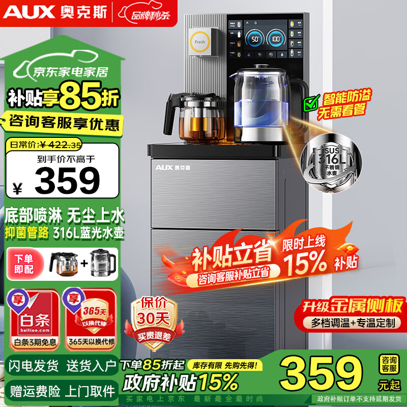 奥克斯(AUX)茶吧机家用多功能智能遥控大屏双显立式下置式饮水机 升级加厚侧板 多档调温 下进水防溢丨316L水壶丨 制热型