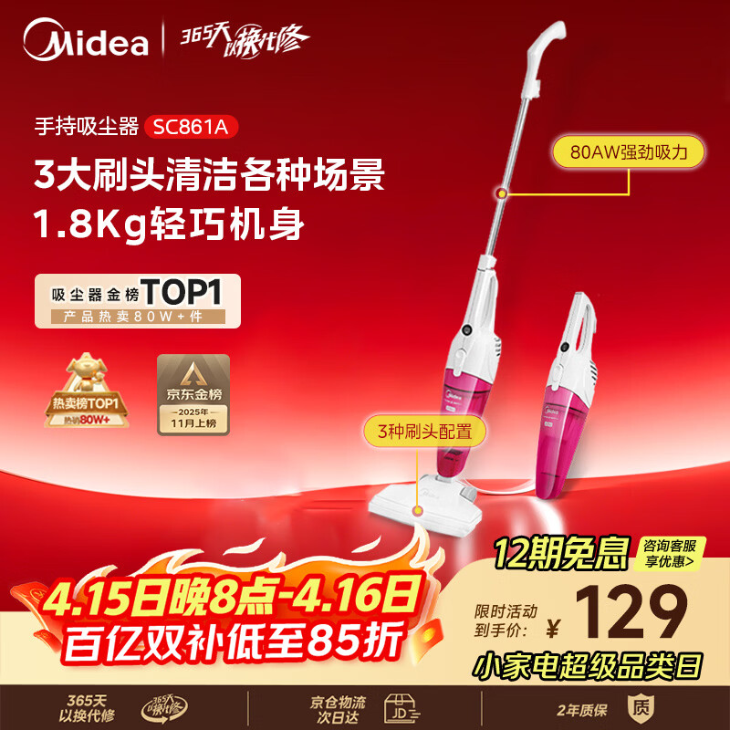 美的(Midea)吸尘器SC861A家用手持立式吸尘器二合一强劲吸力【金榜TOP1】