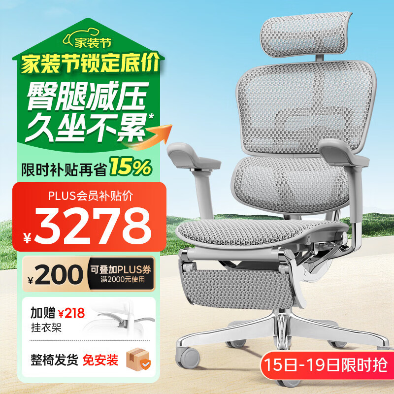 Ergonor保友金豪E2/金豪E2 Pro 高端人体工学椅 电脑椅办公椅家用电竞椅 【金豪E2 Pro】银白网+躺舒宝 整椅发货 送货上门
