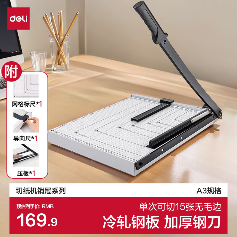 得力A3钢制切纸机 手动切纸刀办公家用小型照片裁剪器切割机切割小型闸刀铡刀裁纸专用 460×380mm