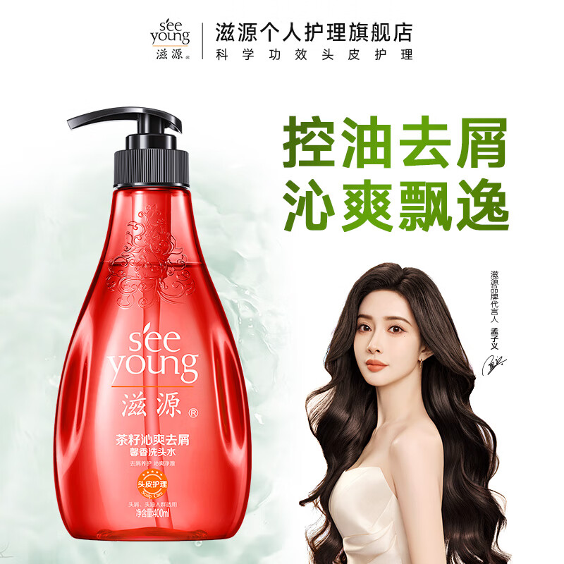 滋源(seeyoung)洗发水露水杨酸控油去屑蓬松无硅油男女士洗头膏 馨香茶籽去屑洗发水400ml