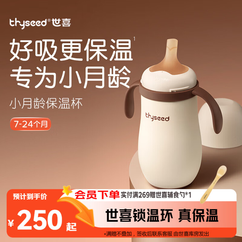 世喜婴儿保温杯幼儿小月龄316L不锈钢吸管学饮水杯保温奶瓶7个月以上
