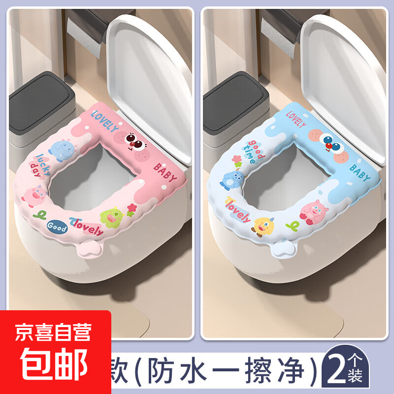马桶垫冬季可爱卡通马桶套坐垫家用垫子EVA防水马桶圈四季 粉+蓝 40*38*2cm