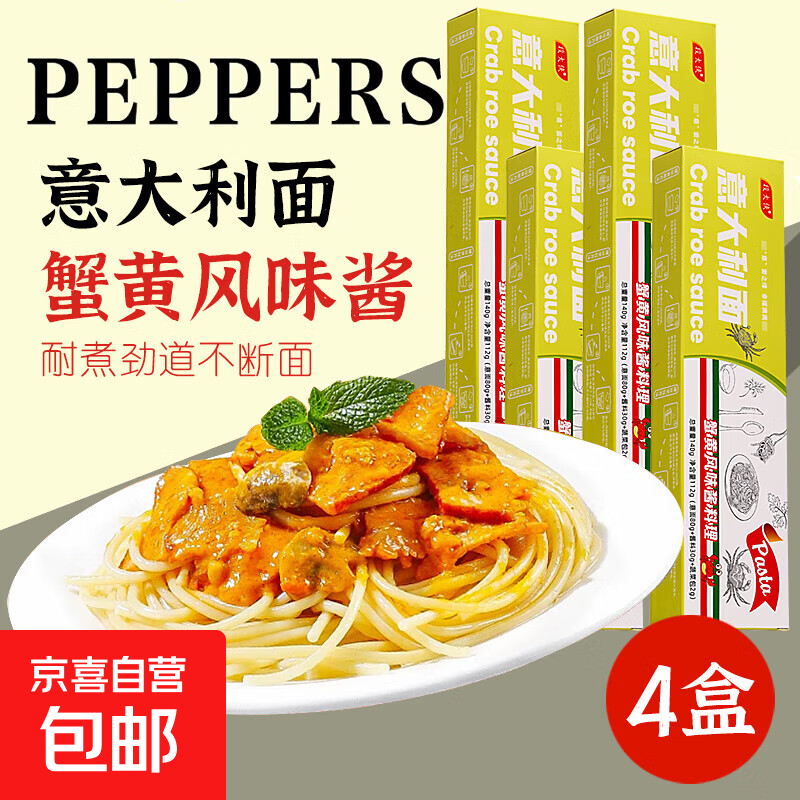 【渠道专享】段大侠意大利面番茄黑椒咖喱蟹黄直形番茄拌面 蟹黄4盒【面+料】