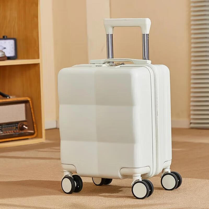行李箱登机箱拉杆箱可上飞机小型学生儿童密码高颜值旅行箱女皮箱 奶油白【三节铝拉杆+背置绑带+手机支架】 14英寸 20x30x40登机箱