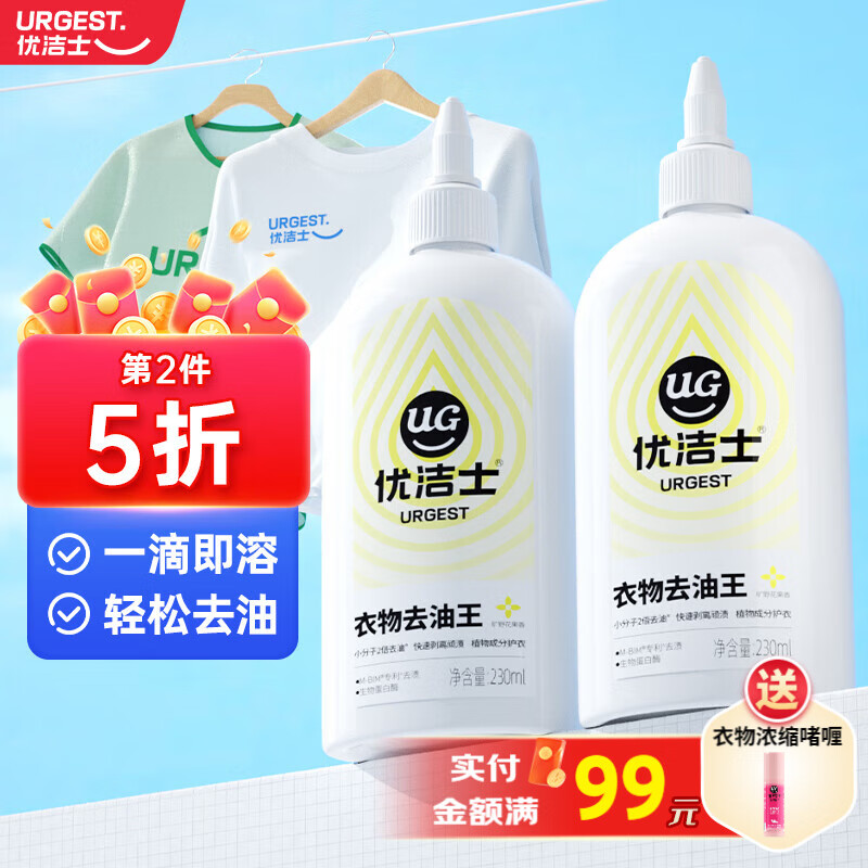 优洁士去油渍衣服去油王干洗剂洗衣神器衣领净去笔渍渗透剂羽绒服清洗剂 衣物去油王230ml-预洗