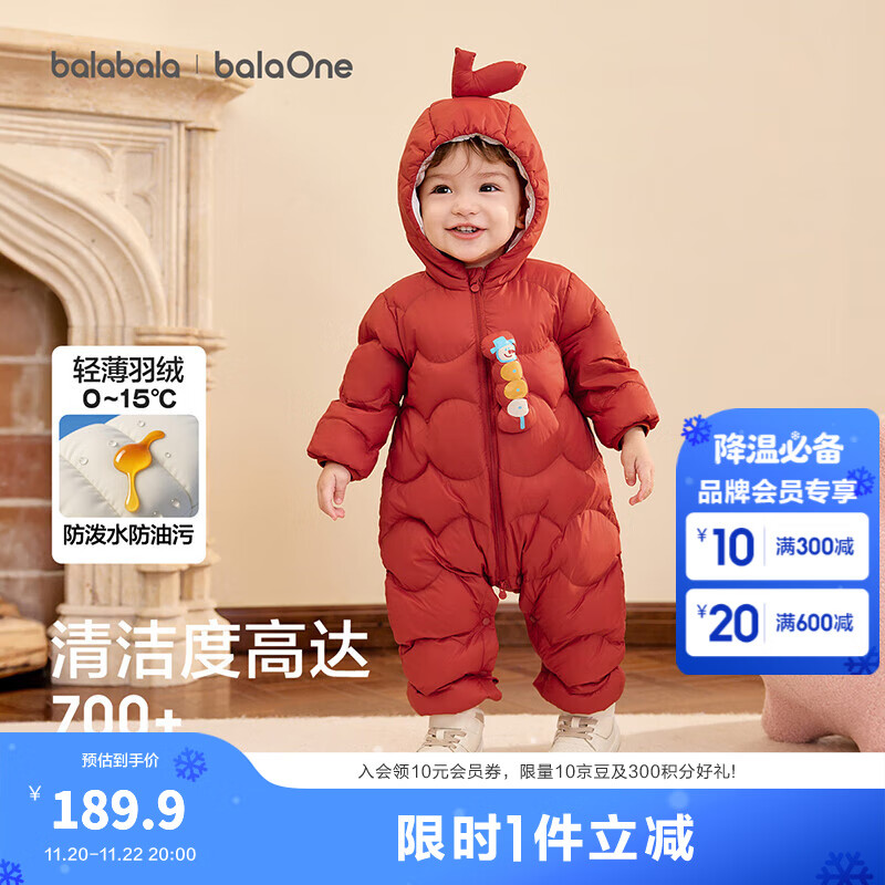 巴拉巴拉童装婴儿连体羽绒服轻薄羽绒服宝宝衣服2025冬装抱衣爬服男童女童 红色糖葫芦-白鸭绒 80 cm-充绒量41g