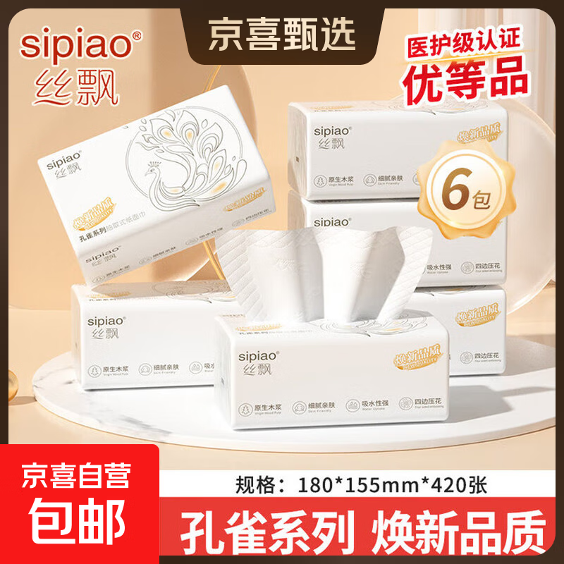 丝飘抽纸巾医护级大包加厚餐巾纸家用面巾纸母婴用纸 5层 420张*6包