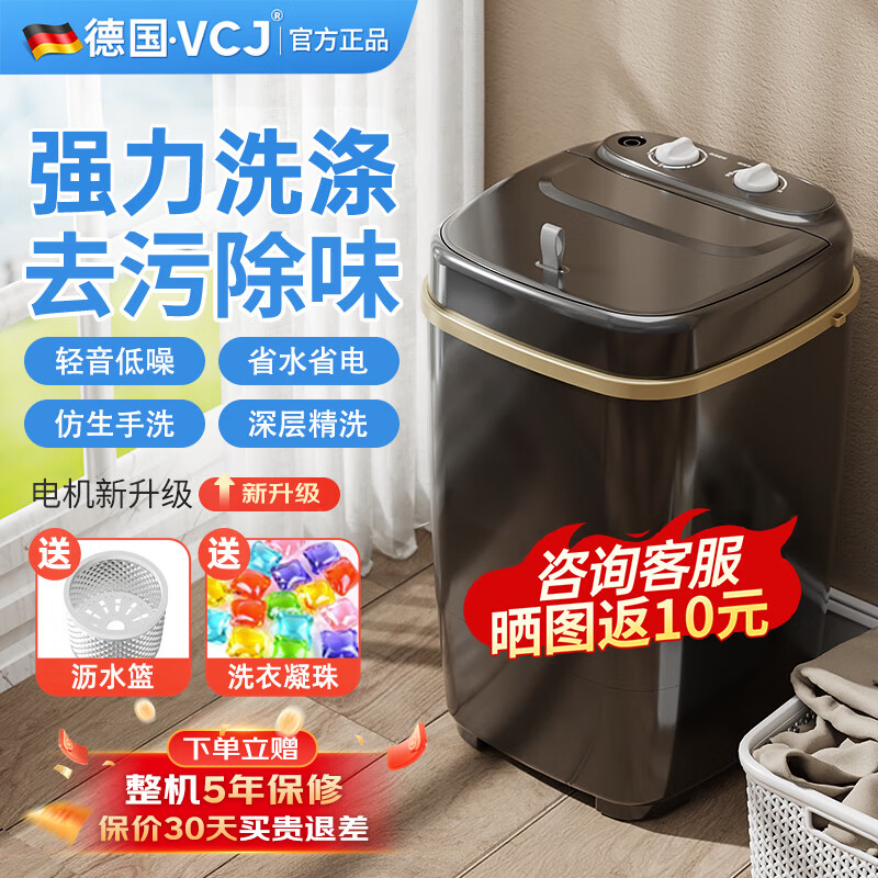 VCJ洗衣机半全自动迷你洗衣机小型洗脱一体小型家用母婴内衣裤洗袜子神器儿童单身人宿舍出租房 7.5KG旗舰款【强力洗涤*定时降噪快洗】黑