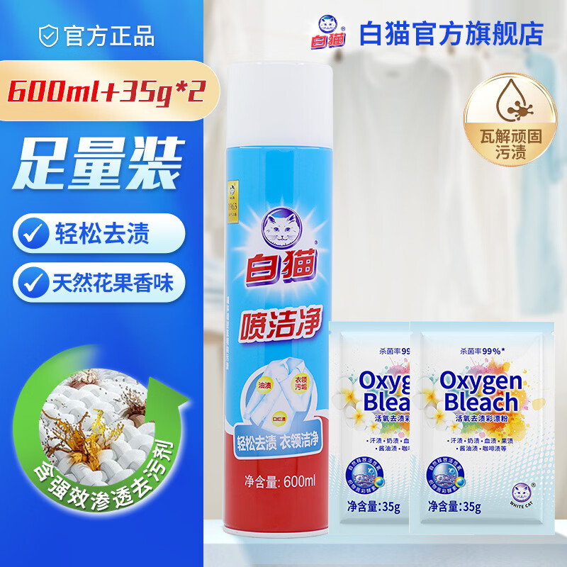 白猫喷洁净600ml 衣领净 羽绒服清洗剂 校服净 去油渍 渍无踪 【护手不伤衣】600ml+2包彩漂粉
