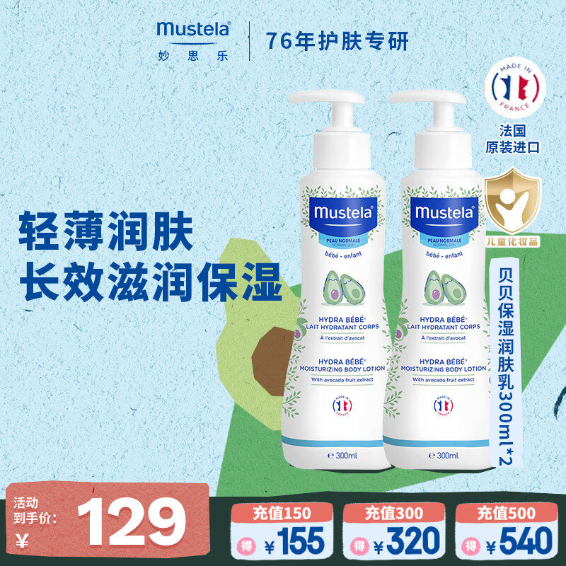 妙思乐儿童保湿润肤乳300ml*2婴儿身体乳补水面霜四季可用法国原装进口