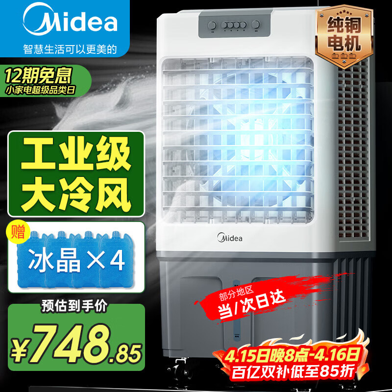 美的(Midea)空调扇制冷风机工业电冷风扇水冷空调加冰块商用冷气机大面积超强风车间降温水冷机 AC360-20A