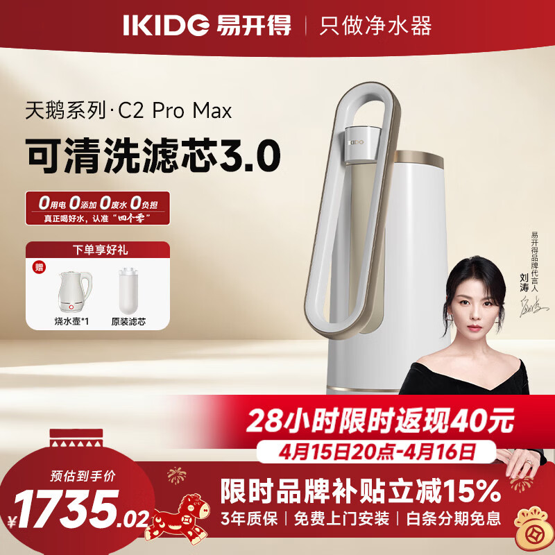 易开得净水器家用净水机 厨房台式自来水直饮不插电0废水净化水龙头一体机便携安装C2 Pro Max