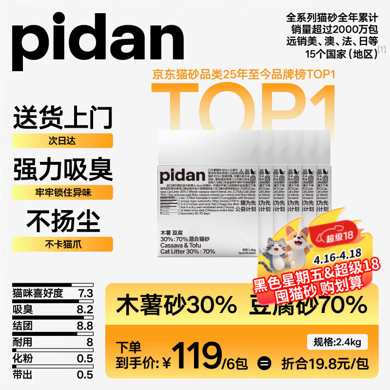 pidan混合猫砂 木薯豆腐猫砂30%:70% 14.4kg整箱 结团不沾底植物砂