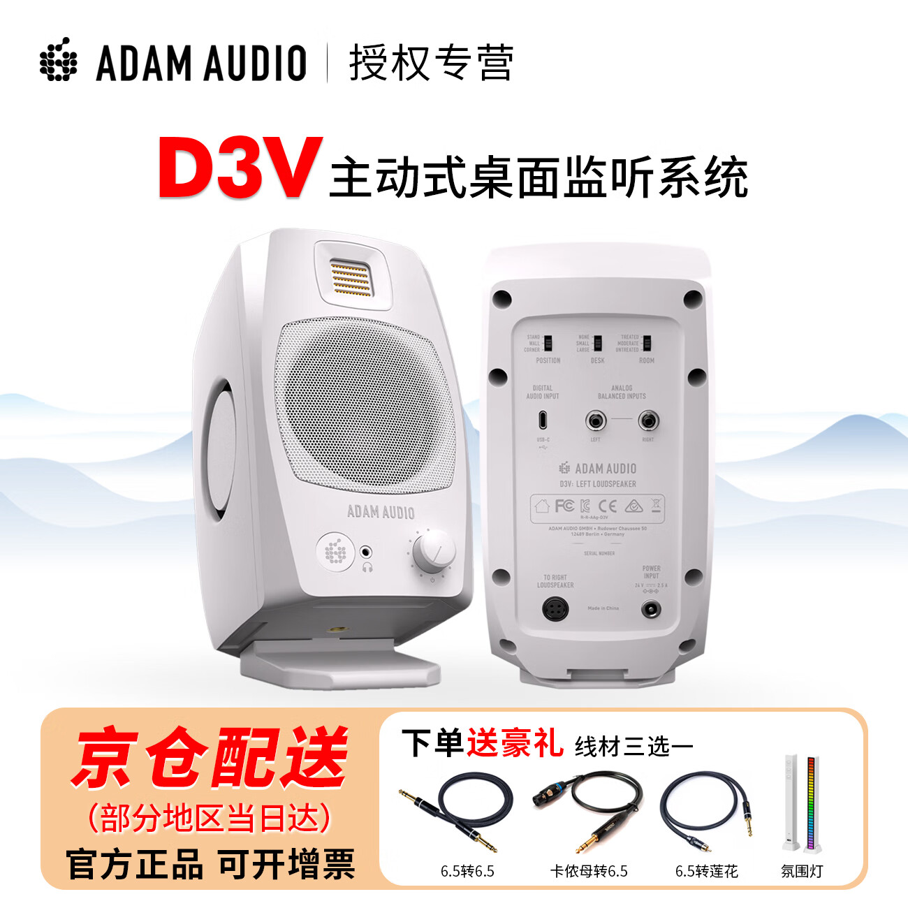爱登姆音响亚当 D3V 桌面音箱 有源近场监听音箱 ADAM 新款 现货黑色 白色 【现货】D3V白色一对(送一对6.35线)