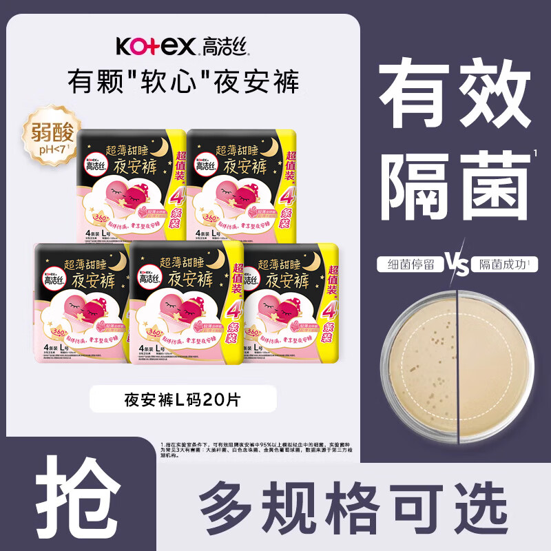 高洁丝【品牌直供】夜安裤裤型卫生巾安睡裤安心裤超长夜用姨妈巾防漏 L 20条 100-140斤 蜜桃夜安裤 默认
