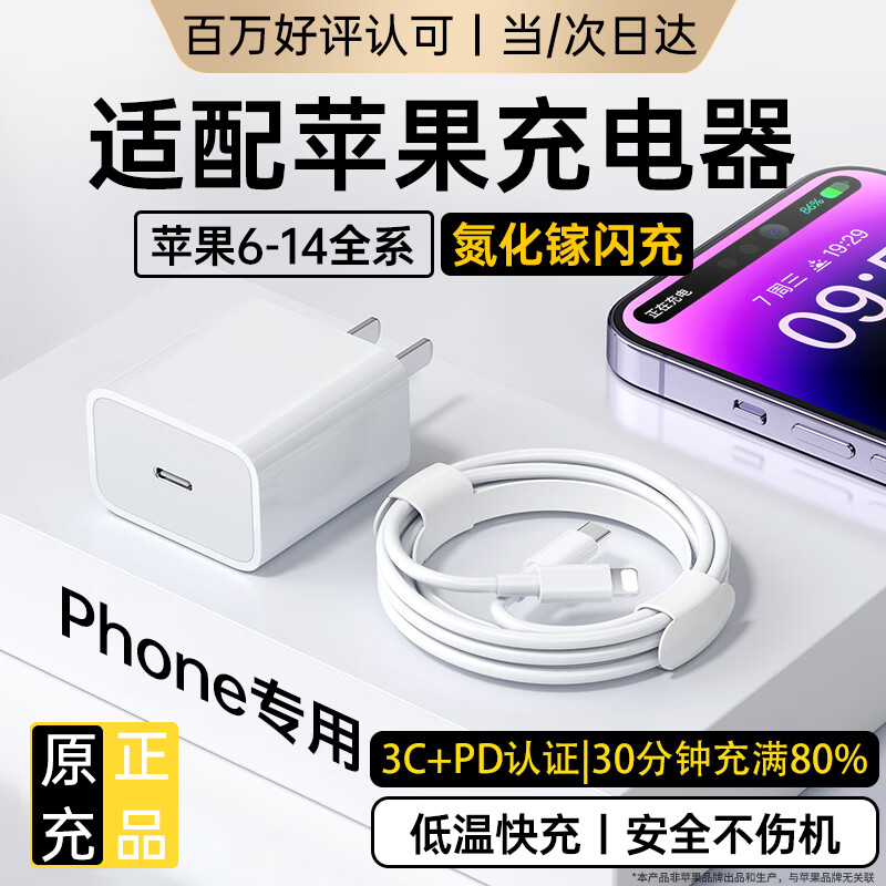 MICROKIA适配苹果充电器充电线氮化镓30/40W原装正品快充线套装iPhone13ProMax14 17 16手机15充电头数据线 【苹果6-14系列】20W快充头+闪充线丨1米套装