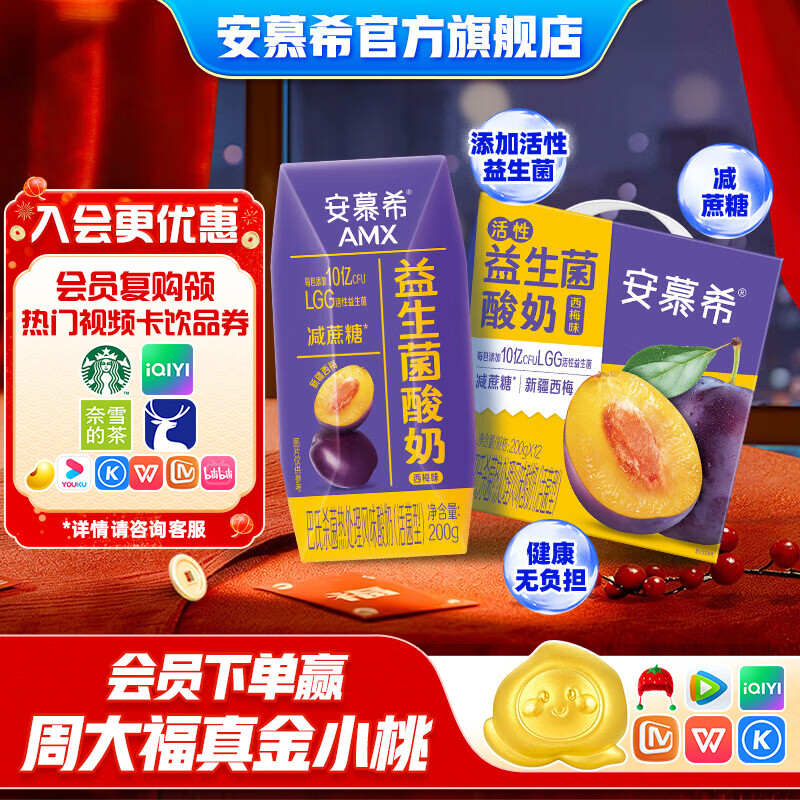 安慕希伊利益生菌西梅风味酸奶整箱常温牛奶乳品营养早餐礼盒装 西梅味200g*12盒*1箱9月产