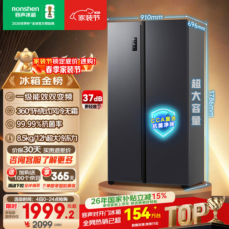 容声609L双开门冰箱超大容量超薄一级能效风冷无霜双变频节能对开门以旧换新BCD-609WD11HP国家补贴