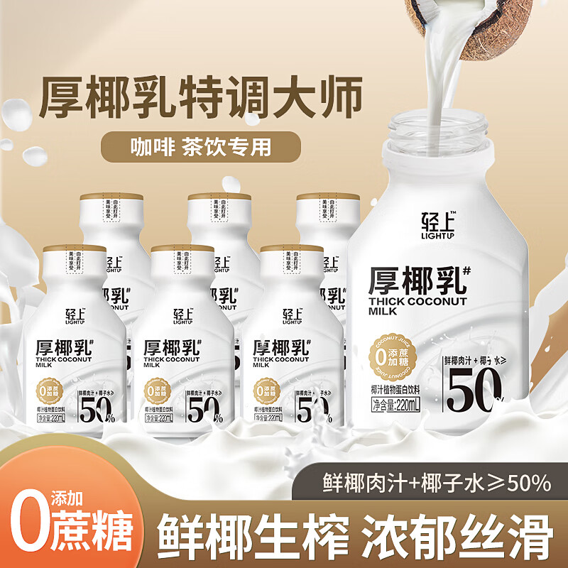 轻上【年货礼盒】0糖生椰植物蛋白饮料饮品椰汁椰子汁添加胶原蛋白肽 厚椰乳220ml*6瓶