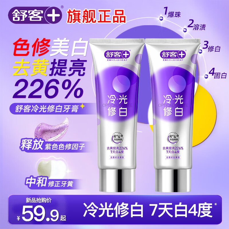 舒客酵素美白牙膏去黄清新口气含氟防蛀男女生专用非去口臭官方正品 改善装】色修美白牙膏 110g*2支