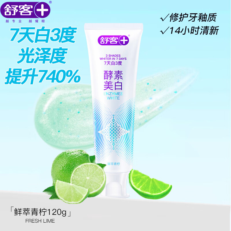 舒客酵素美白牙膏去黄清新口气含氟防蛀男女生专用非去口臭官方正品 鲜萃青柠香型 120g*1支
