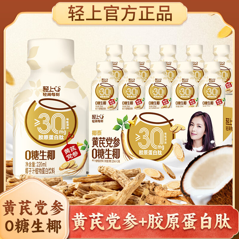 轻上【年货礼盒】0糖生椰植物蛋白饮料饮品椰汁椰子汁添加胶原蛋白肽 轻上黄芪党参0糖生椰220ml*10瓶