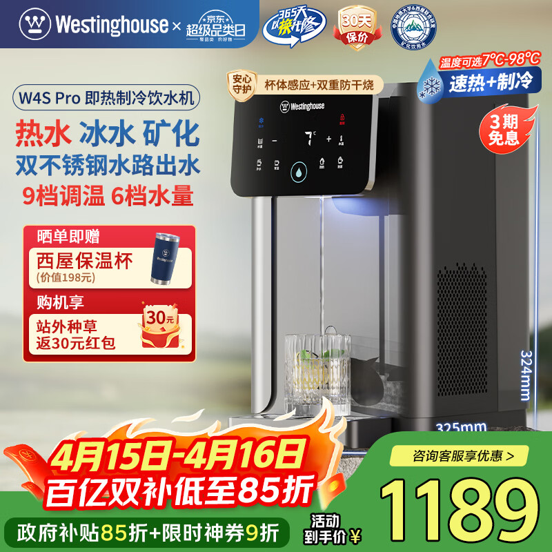西屋(Westinghouse)即热饮水机小型饮水机家用泡奶烧水壶 7℃制冷速热办公客厅台式饮水机 WFH40-W4S Pro